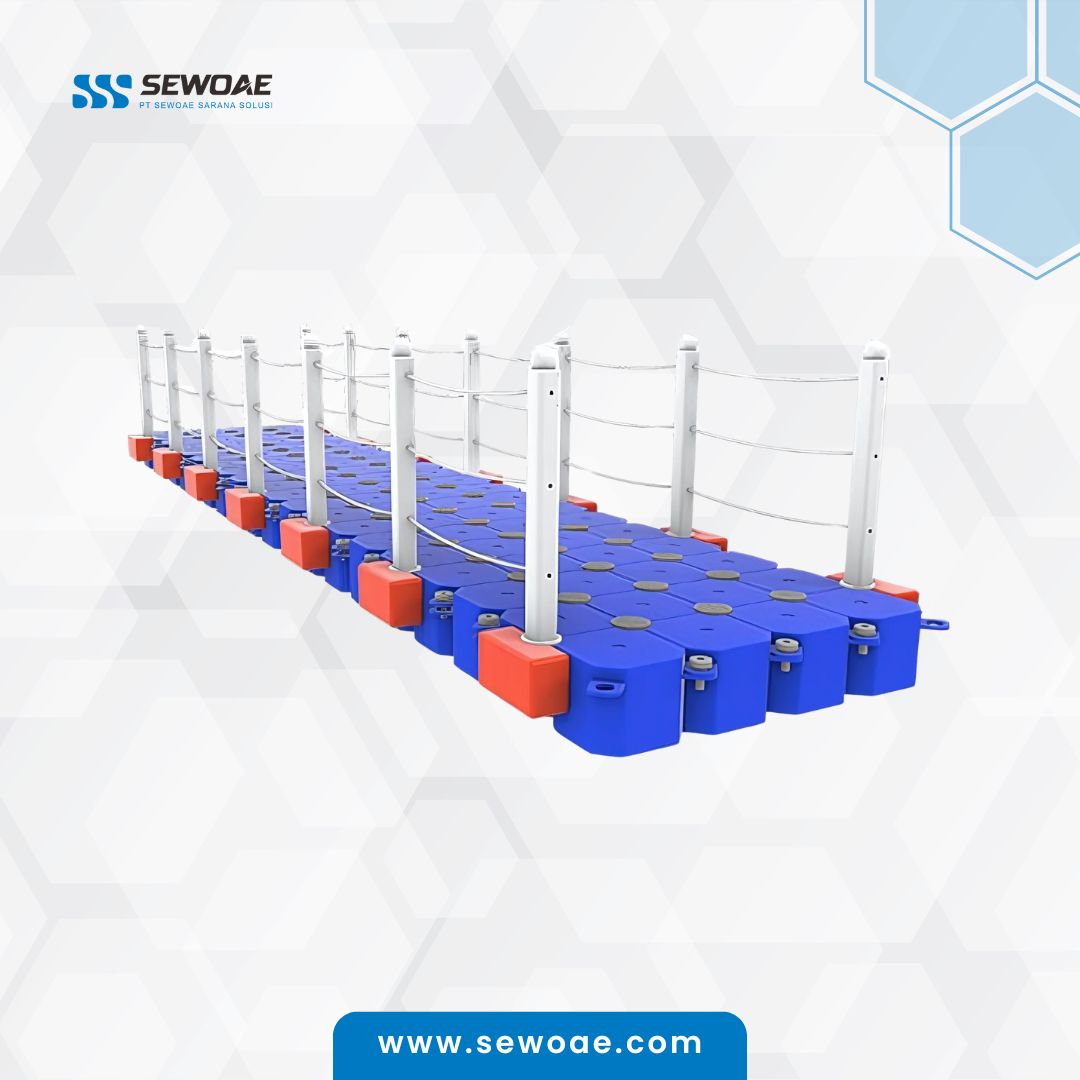 - Jembatan apung kubus apung terbuat dari material HDPE (High-density polyethylene) yang ramah lingkungan