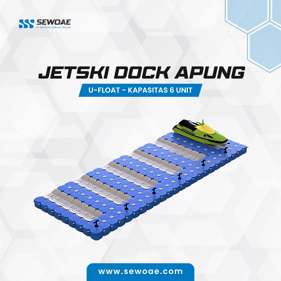 Jetski Dock Apung adalah infrastruktur terapung untuk tempat parkir jetski, dimana posisi jetski berada diatas jetski dock apung. Jetski Dock Apung ini digunakan agar jetski tidak selalu terapung ketika tidak digunakan sehingga kondisi bottom jetksi aman dari tiram. Jetski Dock apung untuk mengantisipasi jetski tidak terombang ambing dan membentur dermaga tempat jetski bersandar sehingga jetski tetap aman dan terawat.